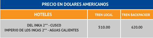 Para los pasajeros que adquieran el paquete con tren local, el primer día se realizará la compra de los boletos en la estación, dado que el trámite es personal presentando su DNI original.