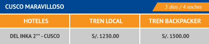 04 Noches de hotel en habitaciones triples con baño privado, agua caliente y tv (3 en Cusco y 1 noche en Aguas Calientes)