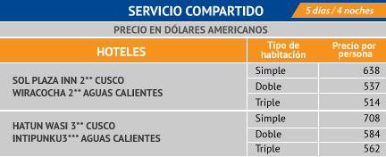 Desayuno. Recorrido por los pueblos del Valle: Coya, Lamay, Calca, Pisac y su mercado artesanal. Almuerzo Buffet en Urubamba. Continuamos nuestro recorrido hacia la fortaleza de Ollantaytambo. Traslado en tren hasta el pueblo de Aguas Calientes. Arribo e instalación en hotel elegido. Pernocte.